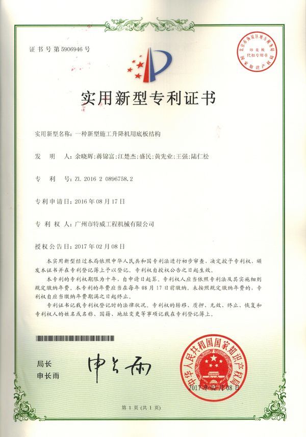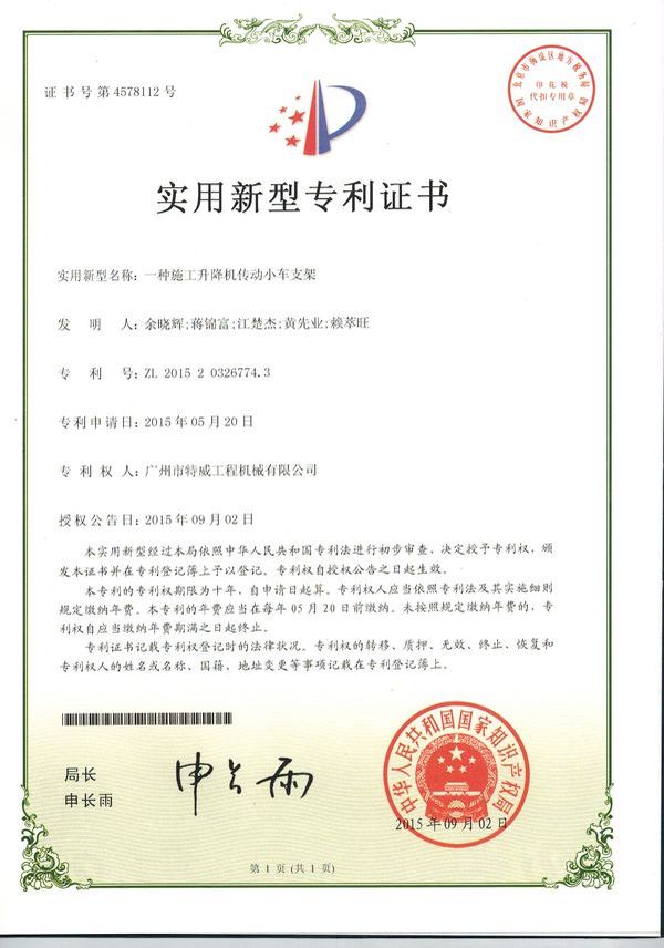 廣州市特威工程機(jī)械有限公司地處廣州市白云區(qū)神山鎮(zhèn),廣清高速神山出口附近,是一家施工升降機(jī)的專(zhuān)業(yè)生產(chǎn)廠(chǎng)家。公司成立于2011年,占地100000多平方米,注冊(cè)資金1060萬(wàn)元,現(xiàn)有員工300余人其中工程技術(shù)人員33人,高級(jí)技術(shù)人員52人。